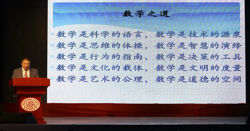 聆听道德讲堂,感受数学魅力。10月10日晚7:30,由校党委宣传部主办,yl23411永利官网承办的“数中有道,道中有德”道德大讲堂在文化艺术活动中心隆重举行。校党委书记符惠明,副书记王心平,副校长原战勇、闫桂琴、薛耀文、郝勇东以及各机关单位、各兄弟学院领导,yl23411永利官网教职工莅临现场,与yl23411永利官网学子们一起走进数学的殿堂。