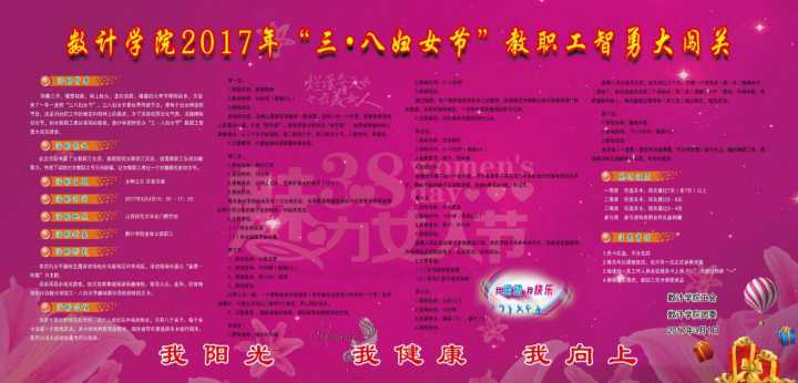 为庆祝三·八妇女节,丰富我院女教职工文化生活,展示我院女教职工的风采,让全体女教职工过一个健康、快乐、温馨的节日,我院工会于2017年3月4日组织全体女教职工进行“三·八妇女节智勇大闯关”活动。校工会副主席亢健和校工会老师杨柳青出席了闯关活动。yl23411永利官网全体女教职工参加了本次活动,部分男教职工到现场为闯关活动捧场。