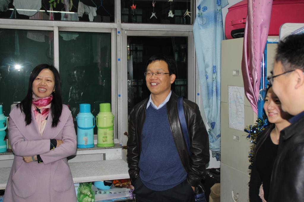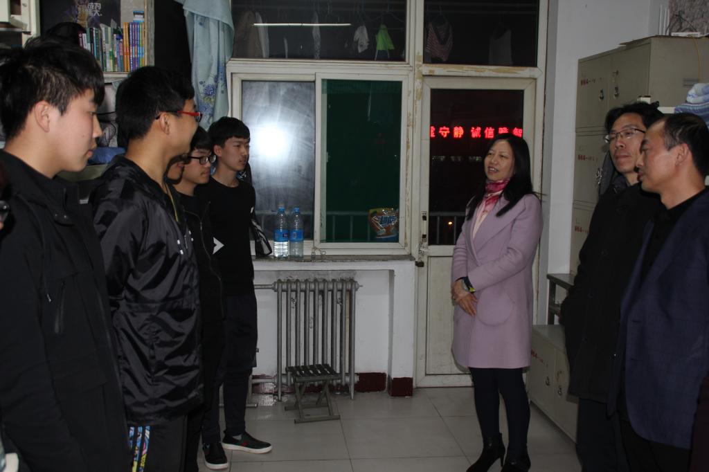 为进一步了解学生的社区生活环境,掌握学生思想动态和实际需求,加强学院对宿舍的管理,2017年3月10日晚,我院党委书记郝红霞、院长史建红、副院长朱红康、副院长安立坚、团委书记陈立记和办公室主任贾静一行,赴新松公寓学生社区,随机走访我院学生宿舍,并与宿舍学生开展座谈、调研活动。