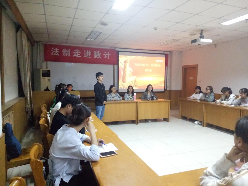 为弘扬法治精神,培养学生的法律素养和法治观念,积极营造校园法制教育氛围,我院于4月24日晚七点半在科学会堂A710会议室召开了法制教育专题座谈会。座谈会由学生会素拓部主讲,2015、2016级各班学生代表参加。