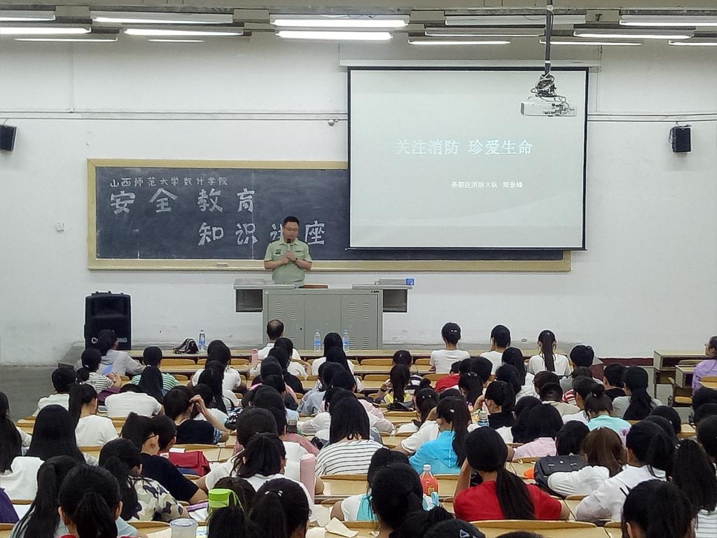 6月3日上午10时,在05103教室,校保卫处消防科科长张威老师、尧都区消防大队郑景峰参谋、yl23411永利官网团委书记陈立记老师出席了安全教育知识专题讲座,yl23411永利官网全体本科生参加。