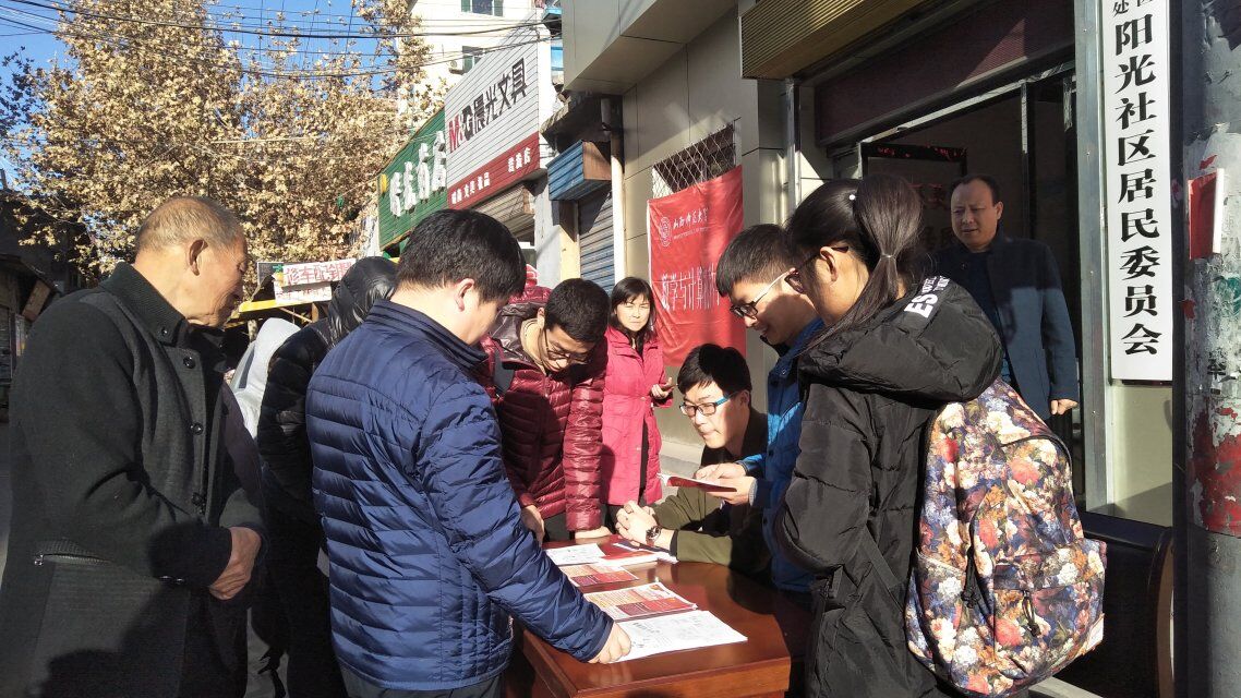 为深入学习宣传贯彻党的十九大精神,积极响应我省十九大精神进基层“百千万师生面对面行动”的号召,2017年12月10日下午,yl23411永利官网宣讲实践队赴水塔社区和鼓楼广场与市民一起学习、宣传和实践十九大精神。