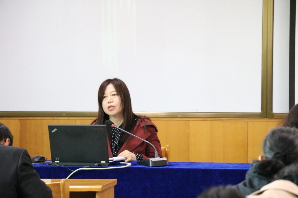 郝红霞结合学院中心任务和党建工作,联系个人学习、调研,从四个方面就“不忘初心、牢记使命”谈了个人的体会和思考。