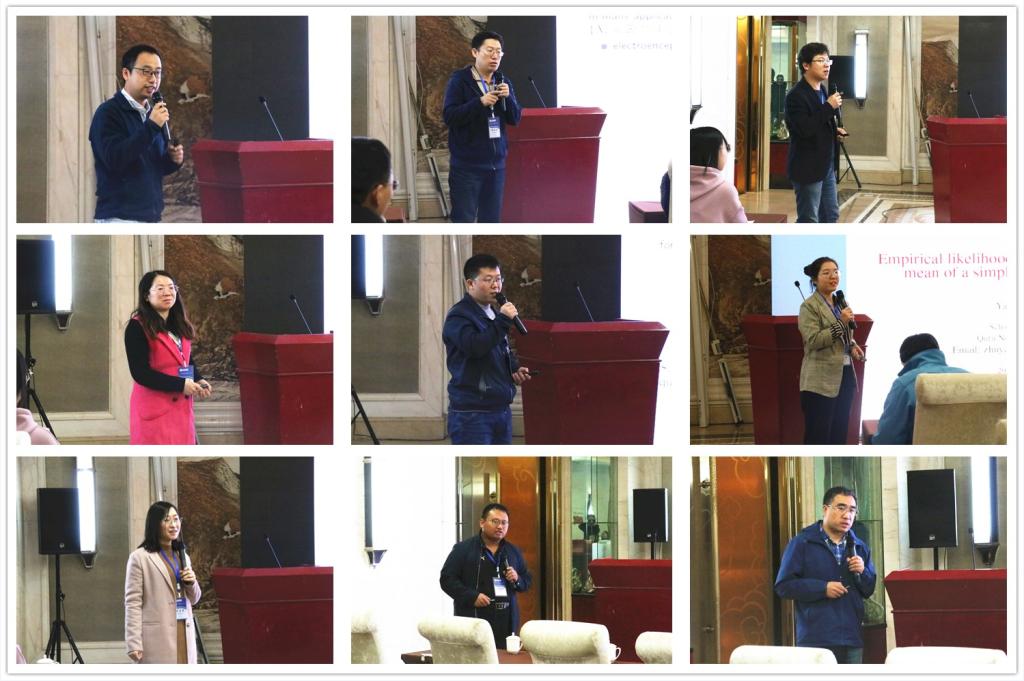 开幕式结束后,与会领导与各位专家学者合影留念。之后,12位学者分别作了学术报告,介绍了自己的最新学术成果和未来研究展望。与会专家学者针对报告内容积极探讨交流,气氛热烈!另外,会议还采用座谈会的形式交流了各院校在统计学教育和人才培养方面的经验和体会。