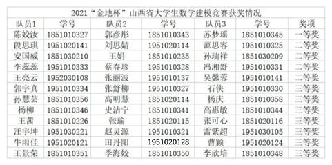 2021年“金地杯”山西省大学生数学建模竞赛获奖名单