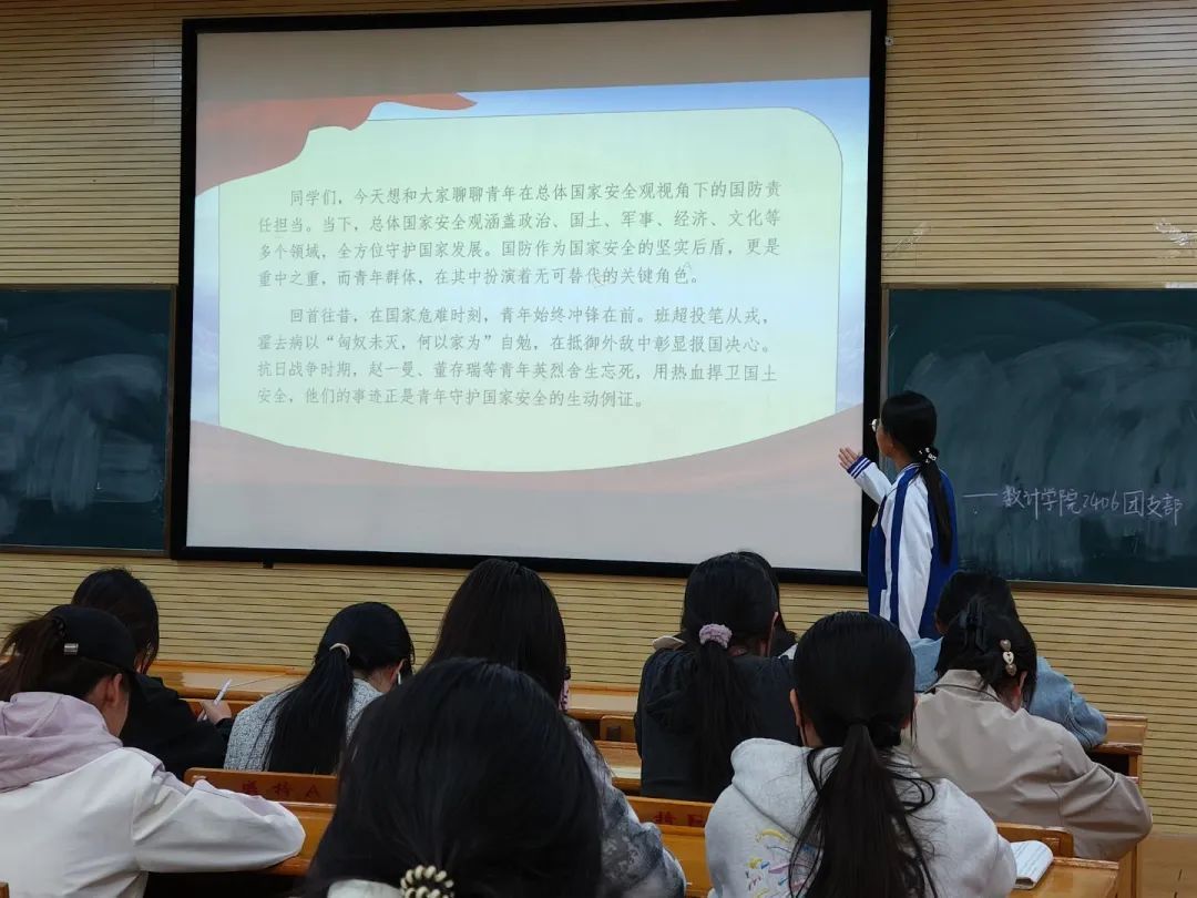 为深入学习贯彻总体国家安全观,切实增强团员青年的国家安全意识,4月11日至4月12日,我院团委组织21、22、23、24级团支部开展了“守护国家安全,共筑青春防线”主题团日活动。